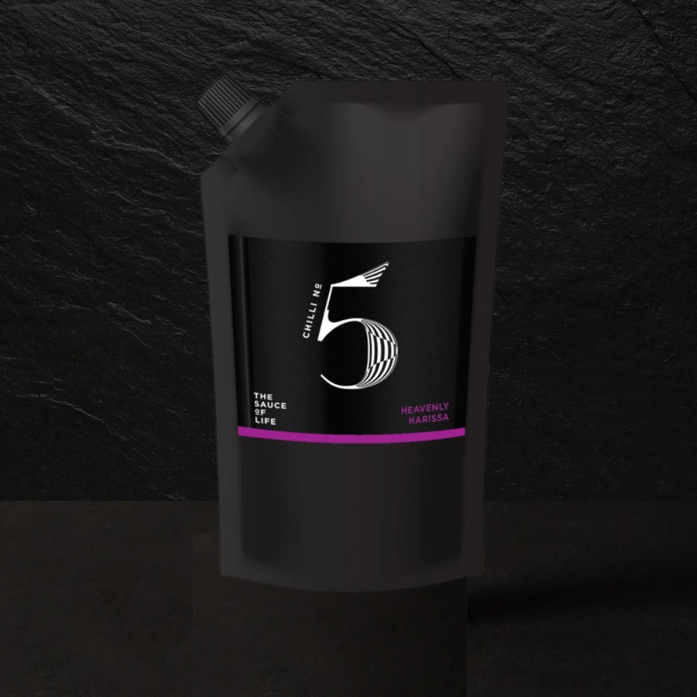 HARISSA CÉLESTE : Mélange de piments secrets Chilli No. 5 (piment), vinaigre de cidre de pomme et vinaigre distillé (sulfures), ail noir et blanc, huile d'olive, tomates séchées au soleil, purée de tomates, gingembre frais, graines de coriandre, sucre de canne, paprika fumé, graines de carvi, graines de cumin, citron, épaississant : gomme xanthane, sel, poivre, fenugrec, guarana, inuline, maca péruvienne, ginseng coréen, L-arginine.