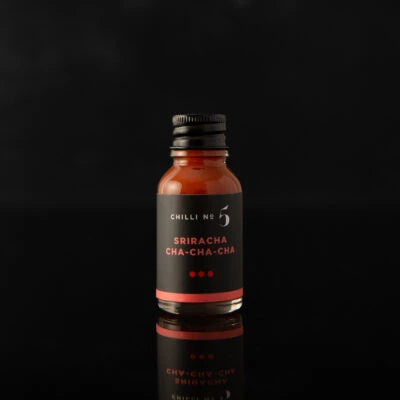 Sriracha Cha Cha Cha : Une sauce Sriracha acidulée et sucrée au goût d'ail avec une consistance épaisse de couleur terre cuite, parfaite pour rehausser vos plats à emporter ou à manger sur place.